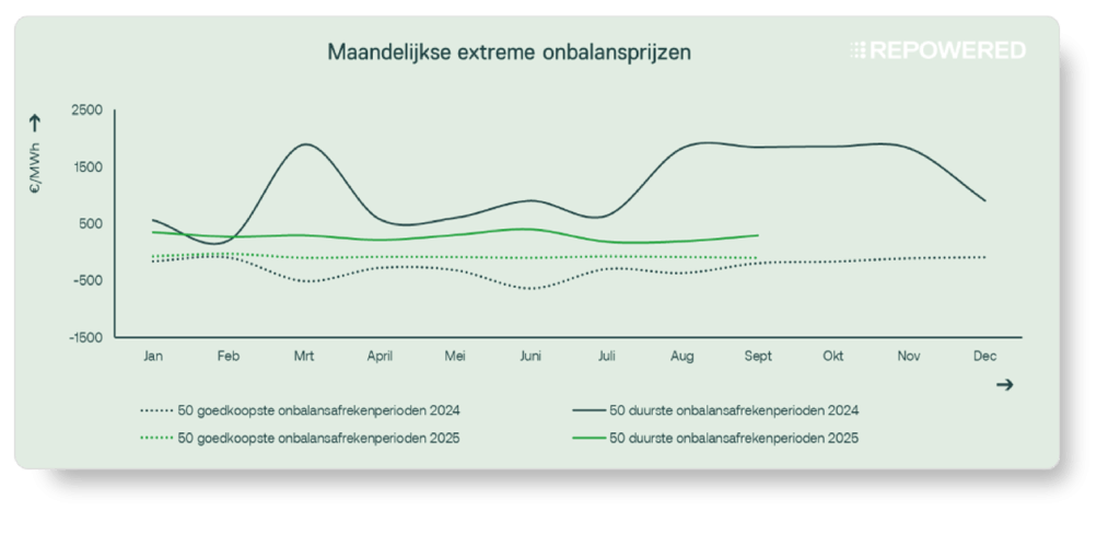 September was een recordmaand; er waren extreem hoge en lage prijzen, drie zes uurblokken met negatieve prijzen binnen slechts 40 uur én een recordaantal kwartieren met regeltoestand 2.
