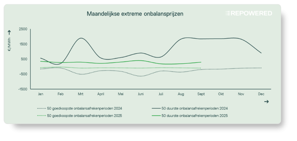 September was een recordmaand; er waren extreem hoge en lage prijzen, drie zes uurblokken met negatieve prijzen binnen slechts 40 uur én een recordaantal kwartieren met regeltoestand 2.