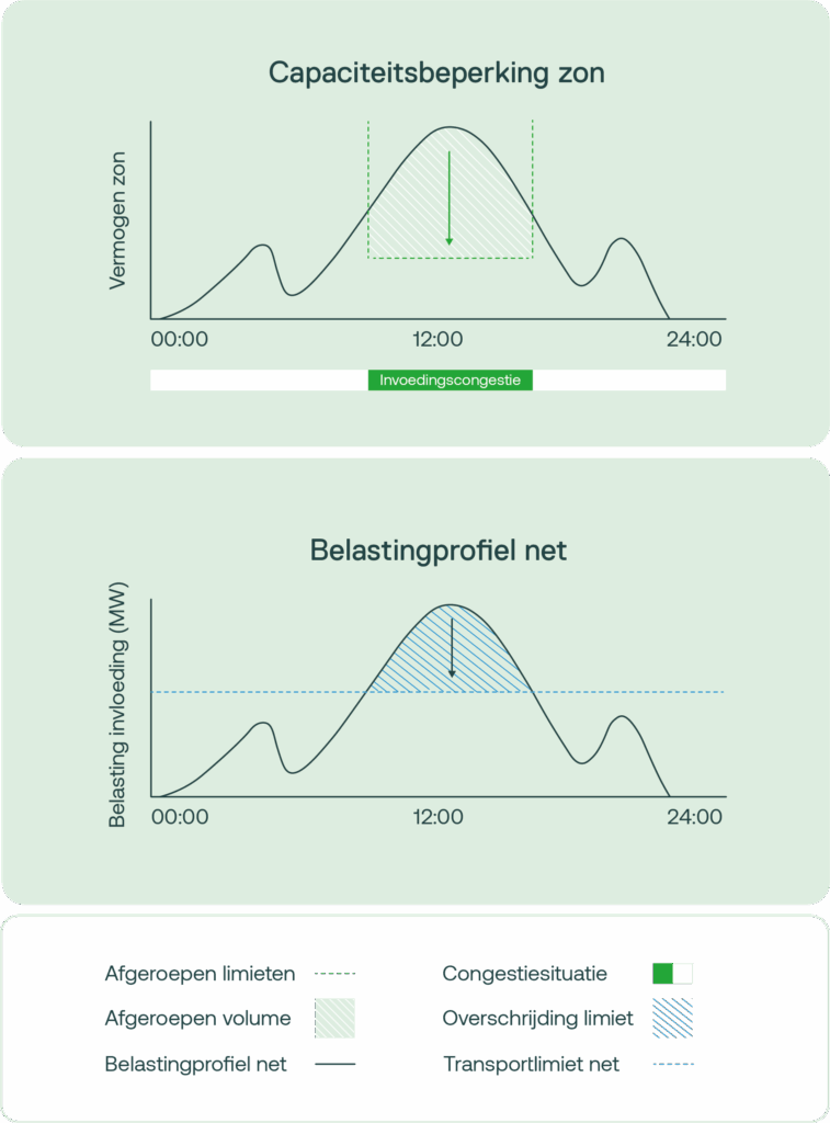 - Daartegenover staat een vergoeding: zowel voor het beschikbaar houden van de capaciteit als voor de daadwerkelijke beperking.