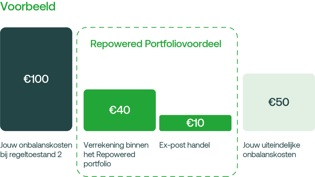 De basis is eenvoudig: hoe groter jouw eigen portfolio is bij Repowered én hoe groter jouw productie of afname tijdens regeltoestand 2, hoe meer compensatie je ontvangt via het Repowered Portfoliovoordeel.