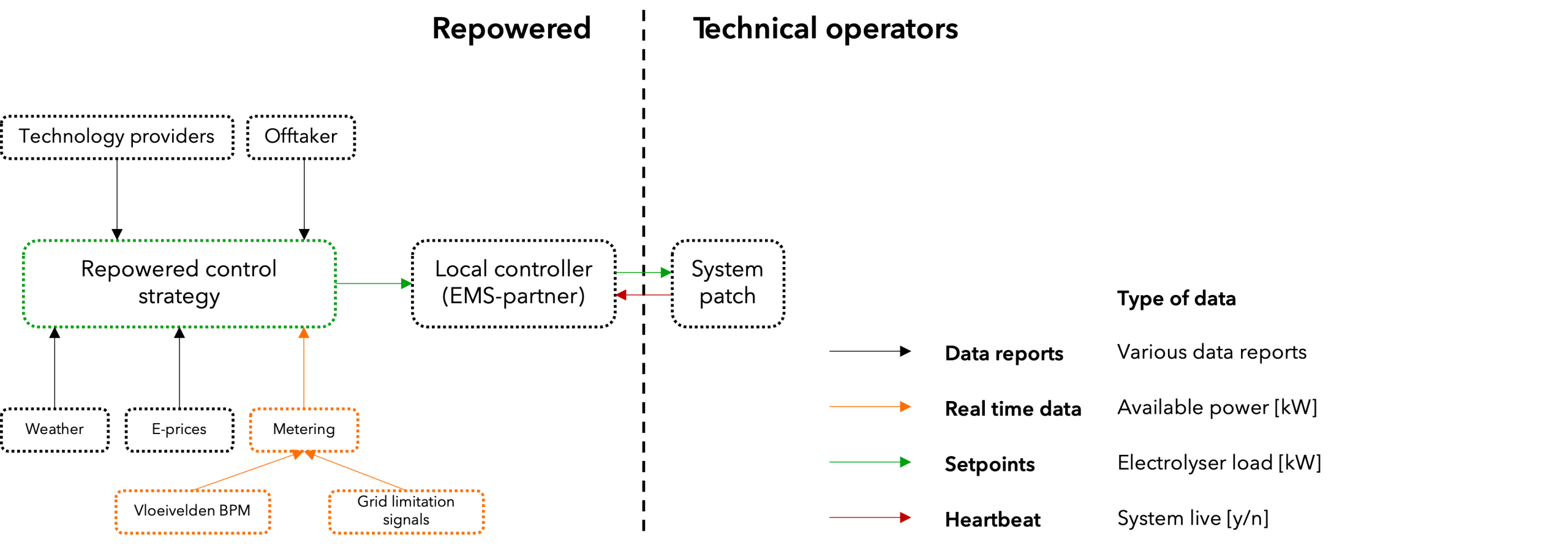 Repowered zal in de operationele fase de aansturing van de elektrolyser verzorgen. Hiervoor is een aansturingsstrategie ontwikkeld die setpoints naar de elektrolyser stuurt op momenten dat er geproduceerd moet worden. Daarbij wordt rekening gehouden met de beschikbare zonne-energie van het 115 MWp zonnepark Vloeivelden Hollandia.