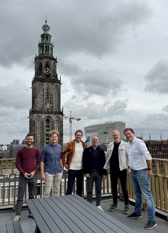Op de foto v.l.n.r. Robin Hermes (Tech Lead, Repowered), Jelle Stoppelenburg (Business Developer, Repowered), Dirk Jan Masselink (Directeur, Repowered), Thijs de Graaf (Directeur, NieuweStroom), Arnout Goeman (Business Development Manager, NieuweStroom), en Erik van Boekel (Innovatie Manager, NieuweStroom)
